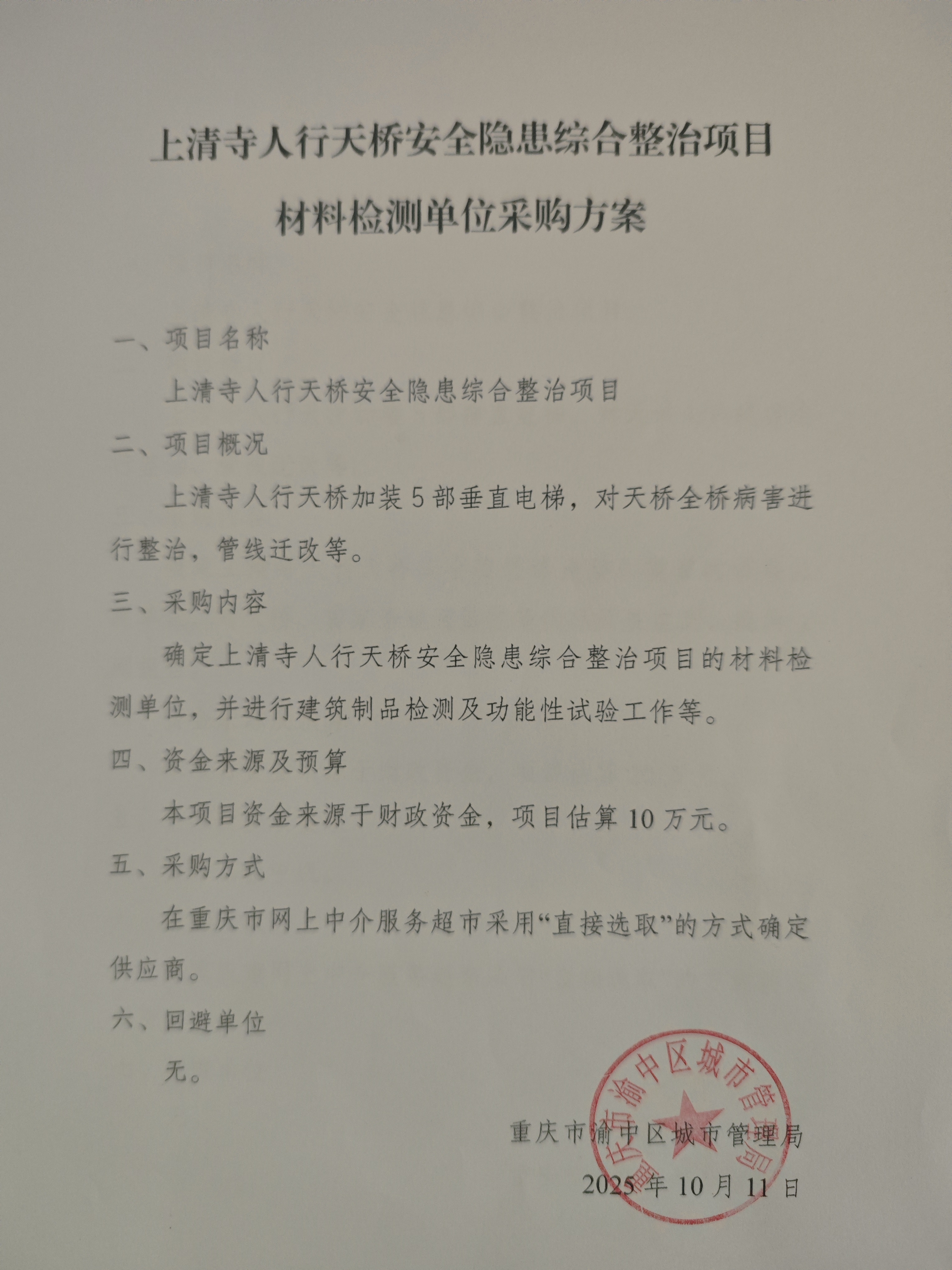我单位在重庆市网上中介超市公开选取建设工程质量检测中介服务机构,现将相关事项公告如下: